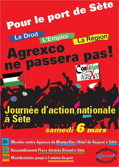 Samedi 6 mars Journée d’action nationale de la Coalition contre Agrexco à Sète