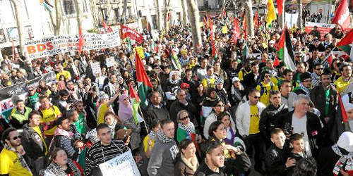 Après les interventions d’un paysan palestinien, d’un cinéaste israélien ou encore de Nicolas Duntze de la Confédération paysanne, un cortège s’est formé pour défiler jusqu’à l’entrée de la gare maritime, en passant devant la mairie, par le quai Lemaresquier et la rue Euzet. Le port, dont l’accès était barré, était placé sous haute surveillance, entre les gendarmes mobiles et maritimes, les policiers et même un hélicoptère. La manifestation s’est dispersée sans incident.