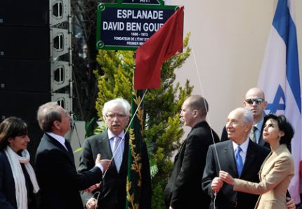 Le maire de Paris, Bertrand Delanoë, le président israélien Shimon Pérès et Rachida Dati, maire du 7è arrondissement de la capitale ont inauguré l’esplanade le 15 avril 2010.