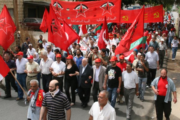 A leur arrivée à la Place de Aoukar, les manifestants ont écouté quatre interventions faites par D. Marie NASSIF-DEBS, vice Secrétaire général du Parti Communiste libanais, Ali FAYÇAL, membre du BP du Front démocratique pour la libération de la Palestine (FDPLP), Abou Firas, membre du BP du Parti du peuple palestinien, et Nazih HAMZAH, secrétaire du Parti démocratique populaire.