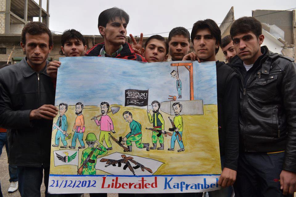 La ville libérée de Kafranbel se moque du bombardement par l’axe du mal du camp palestinien de Yarmouk #Syria #Palestine #Damascus pic.twitter.com/4F6TjRcj