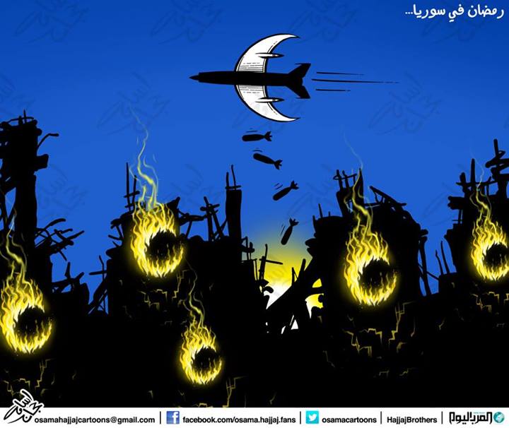 Triste Souhour (repas pris avant le début du jeune) par l’artiste Hicham Chemali posté sur sur la page Facebook “Syrian Revolution Caricature” :