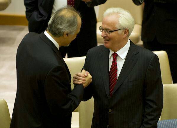 Photo des représentants d’Assad et Poutine à l’ONU, après le Veto de la Russie et de la Chine pour protéger Assad de la CPI, pendant les attaques chimiques du jeudi 22 mai.