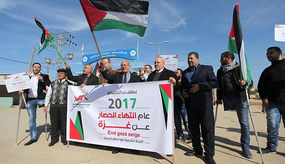 Palestinians take part in a protest against the Gaza blockade, near Israeli Erez crossing in the northern Gaza Strip Laisser un commentaire Δ